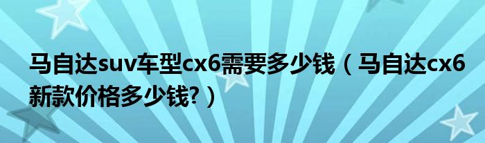 大家好,小美来为大家解答以上问题。马自达suv车型cx6需要多少钱,马自达cx6新款价格多少钱?很多人还不知道,现在让我们一起来看看吧!