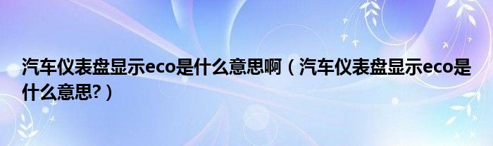 大家好,小美来为大家解答以上问题。汽车仪表盘显示eco是什么意思啊,汽车仪表盘显示eco是什么意思?很多人还不知道,现在让我们一起来看看吧!