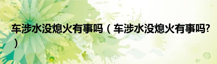 大家好,小美来为大家解答以上问题。车涉水没熄火有事吗,车涉水没熄火有事吗?很多人还不知道,现在让我们一起来看看吧!