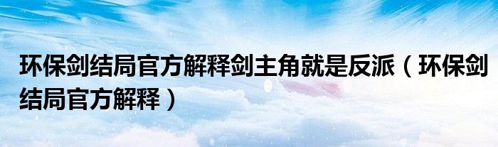 大家好,小晋来为大家解答以下问题,关于环保剑结局官方解释剑主角就是反派,环保剑结局官方解释很多人还不知道,今天让我们一起来看看吧!
