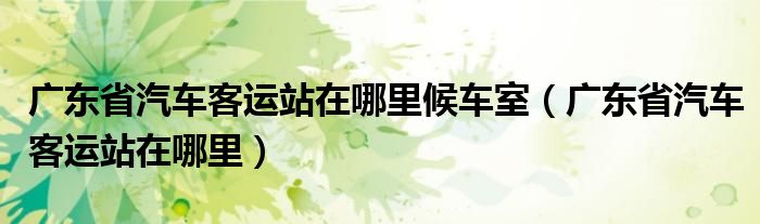 关于广东省汽车客运站在哪里候车室,广东省汽车客运站在哪里这个很多人还不知道,今天菲菲来为大家解答以上的问题,现在让我们一起来看看吧!