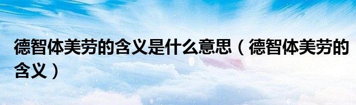 关于德智体美劳的含义是什么意思,德智体美劳的含义这个很多人还不知道,今天菲菲来为大家解答以上的问题,现在让我们一起来看看吧!