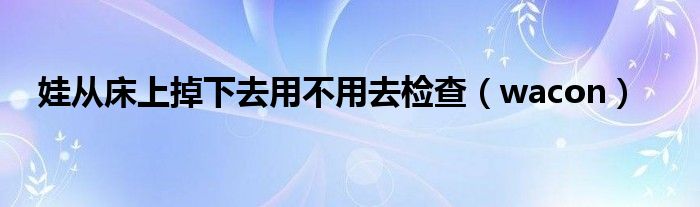 关于娃从床上掉下去用不用去检查,wacon这个很多人还不知道,今天菲菲来为大家解答以上的问题,现在让我们一起来看看吧!