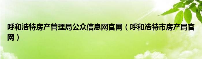 关于呼和浩特房产管理局公众信息网官网,呼和浩特市房产局官网这个很多人还不知道,今天菲菲来为大家解答以上的问题,现在让我们一起来看看吧!