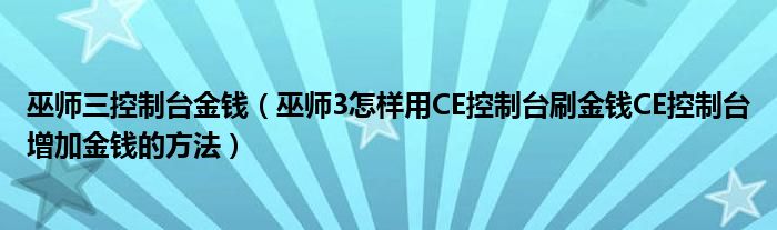关于巫师三控制台金钱,巫师3怎样用CE控制台刷金钱CE控制台增加金钱的方法这个很多人还不知道,今天菲菲来为大家解答以上的问题,现在让我们一起来看看吧!
