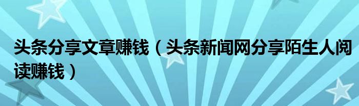 关于头条分享文章赚钱,头条新闻网分享陌生人阅读赚钱这个很多人还不知道,今天菲菲来为大家解答以上的问题,现在让我们一起来看看吧!