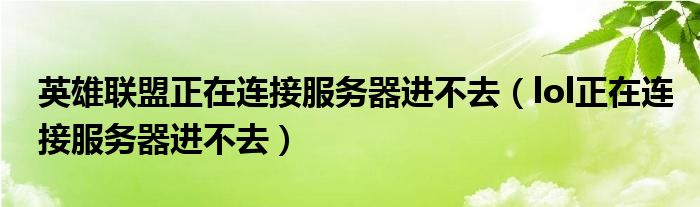 关于英雄联盟正在连接服务器进不去,lol正在连接服务器进不去这个很多人还不知道,今天菲菲来为大家解答以上的问题,现在让我们一起来看看吧!