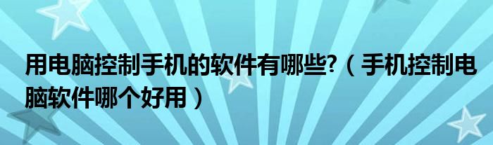 关于用电脑控制手机的软件有哪些?,手机控制电脑软件哪个好用这个很多人还不知道,今天菲菲来为大家解答以上的问题,现在让我们一起来看看吧!
