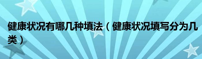 关于健康状况有哪几种填法,健康状况填写分为几类这个很多人还不知道,今天菲菲来为大家解答以上的问题,现在让我们一起来看看吧!
