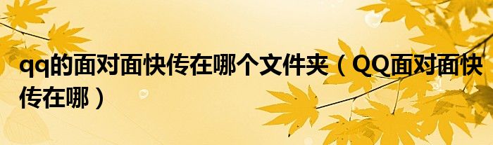 关于qq的面对面快传在哪个文件夹,QQ面对面快传在哪这个很多人还不知道,今天菲菲来为大家解答以上的问题,现在让我们一起来看看吧!