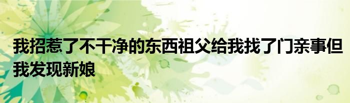 关于我招惹了不干净的东西祖父给我找了门亲事但我发现新娘这个很多人还不知道,今天菲菲来为大家解答以上的问题,现在让我们一起来看看吧!