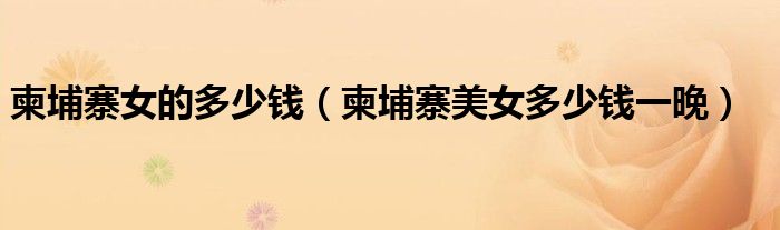 关于柬埔寨女的多少钱,柬埔寨美女多少钱一晚这个很多人还不知道,今天菲菲来为大家解答以上的问题,现在让我们一起来看看吧!