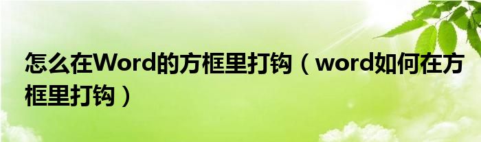 关于怎么在Word的方框里打钩,word如何在方框里打钩这个很多人还不知道,今天菲菲来为大家解答以上的问题,现在让我们一起来看看吧!