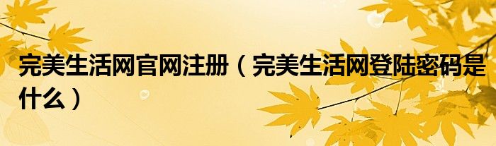 关于完美生活网官网注册,完美生活网登陆密码是什么这个很多人还不知道,今天菲菲来为大家解答以上的问题,现在让我们一起来看看吧!