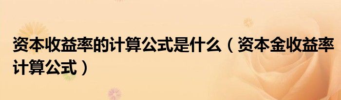 资本收益率的计算公式是什么(资本金收益率计算公式)