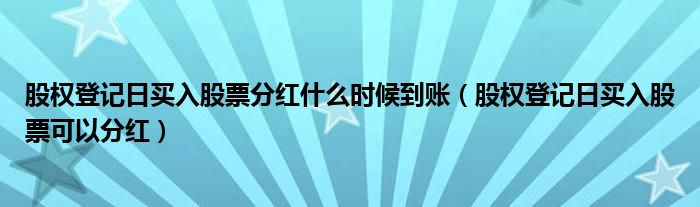 关于股权登记日买入股票分红什么时候到账,股权登记日买入股票可以分红这个很多人还不知道,今天菲菲来为大家解答以上的问题,现在让我们一起来看看吧!
