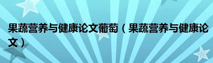 关于果蔬营养与健康论文葡萄,果蔬营养与健康论文这个很多人还不知道,今天菲菲来为大家解答以上的问题,现在让我们一起来看看吧!