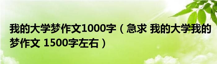 关于我的大学梦作文1000字,急求 我的大学我的梦作文 1500字左右这个很多人还不知道,今天菲菲来为大家解答以上的问题,现在让我们一起来看看吧!