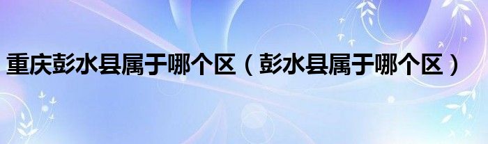 关于重庆彭水县属于哪个区,彭水县属于哪个区这个很多人还不知道,今天菲菲来为大家解答以上的问题,现在让我们一起来看看吧!