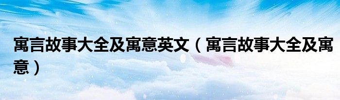 关于寓言故事大全及寓意英文,寓言故事大全及寓意这个很多人还不知道,今天菲菲来为大家解答以上的问题,现在让我们一起来看看吧!