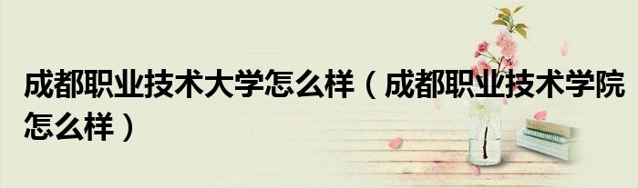 关于成都职业技术大学怎么样,成都职业技术学院怎么样这个很多人还不知道,今天菲菲来为大家解答以上的问题,现在让我们一起来看看吧!