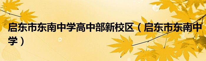 关于启东市东南中学高中部新校区,启东市东南中学这个很多人还不知道,今天菲菲来为大家解答以上的问题,现在让我们一起来看看吧!