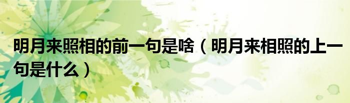明月来照相的前一句是啥(明月来相照的上一句是什么)