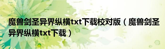 魔兽剑圣异界纵横txt下载校对版(魔兽剑圣异界纵横txt下载)