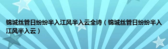 关于锦城丝管日纷纷半入江风半入云全诗,锦城丝管日纷纷半入江风半入云这个很多人还不知道,今天菲菲来为大家解答以上的问题,现在让我们一起来看看吧!