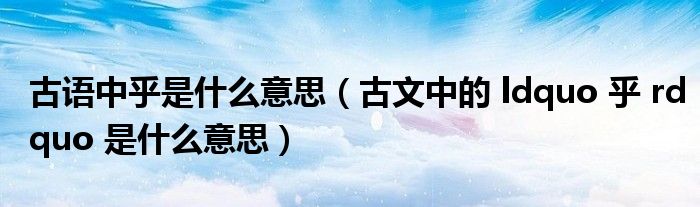 关于古语中乎是什么意思,古文中的 ldquo 乎 rdquo 是什么意思这个很多人还不知道,今天菲菲来为大家解答以上的问题,现在让我们一起来看看吧!