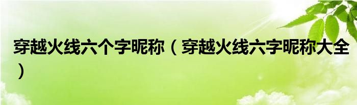 关于穿越火线六个字昵称,穿越火线六字昵称大全这个很多人还不知道,今天菲菲来为大家解答以上的问题,现在让我们一起来看看吧!