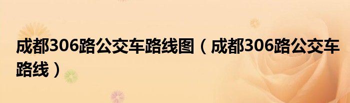 关于成都306路公交车路线图,成都306路公交车路线这个很多人还不知道,今天菲菲来为大家解答以上的问题,现在让我们一起来看看吧!