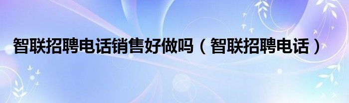 关于智联招聘电话销售好做吗,智联招聘电话这个很多人还不知道,今天菲菲来为大家解答以上的问题,现在让我们一起来看看吧!