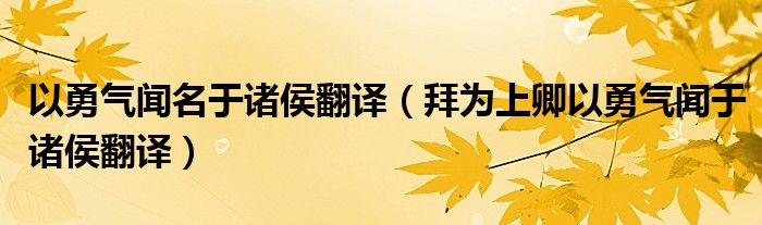 关于以勇气闻名于诸侯翻译,拜为上卿以勇气闻于诸侯翻译这个很多人还不知道,今天菲菲来为大家解答以上的问题,现在让我们一起来看看吧!