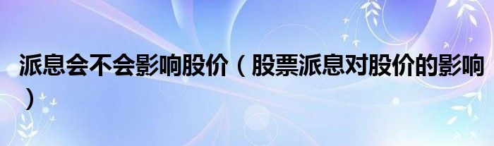 最佳答案关于派息会不会影响股价,股票派息对股价的影响这个很多人还不知道,今天菲菲来为大家解答以上的问题,现在让我们一起来看看吧!1、股票 分红派息,公司经营良好,有股本扩张的要求,有扩大经营规模的要求,在牛市中,市场对股价的期望会高些,因此会刺激股价上涨,甚至走出填权行情.在熊市中,却相反,市场...
