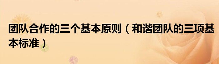 关于团队合作的三个基本原则,和谐团队的三项基本标准这个很多人还不知道,今天菲菲来为大家解答以上的问题,现在让我们一起来看看吧!