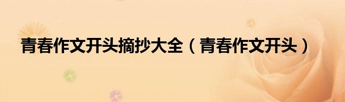 关于青春作文开头摘抄大全,青春作文开头这个很多人还不知道,今天菲菲来为大家解答以上的问题,现在让我们一起来看看吧!
