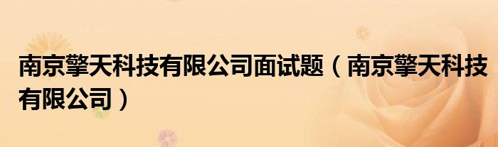 关于南京擎天科技有限公司面试题,南京擎天科技有限公司这个很多人还不知道,今天菲菲来为大家解答以上的问题,现在让我们一起来看看吧!