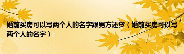 关于婚前买房可以写两个人的名字跟男方还贷,婚前买房可以写两个人的名字这个很多人还不知道,今天菲菲来为大家解答以上的问题,现在让我们一起来看看吧!