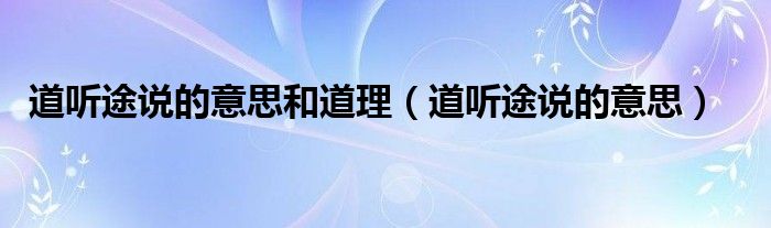 关于道听途说的意思和道理,道听途说的意思这个很多人还不知道,今天菲菲来为大家解答以上的问题,现在让我们一起来看看吧!
