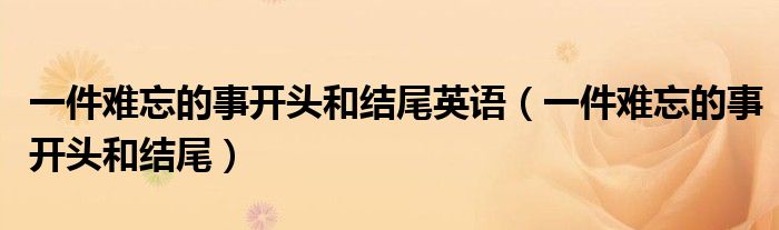 关于一件难忘的事开头和结尾英语,一件难忘的事开头和结尾这个很多人还不知道,今天菲菲来为大家解答以上的问题,现在让我们一起来看看吧!
