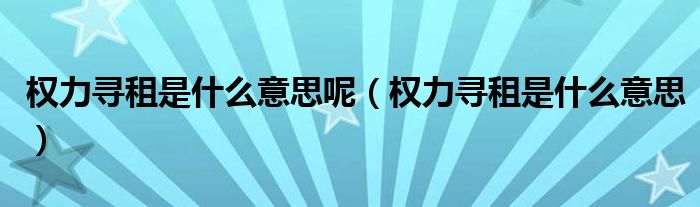 权力寻租是什么意思呢(权力寻租是什么意思)