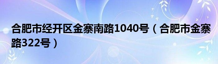 合肥市经开区金寨南路1040号(合肥市金寨路322号)