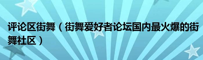 关于评论区街舞,街舞爱好者论坛国内最火爆的街舞社区这个很多人还不知道,今天菲菲来为大家解答以上的问题,现在让我们一起来看看吧!