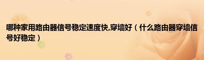 关于哪种家用路由器信号稳定速度快,穿墙好,什么路由器穿墙信号好稳定这个很多人还不知道,今天菲菲来为大家解答以上的问题,现在让我们一起来看看吧!