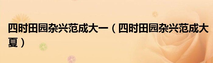 关于四时田园杂兴范成大一,四时田园杂兴范成大夏这个很多人还不知道,今天菲菲来为大家解答以上的问题,现在让我们一起来看看吧!