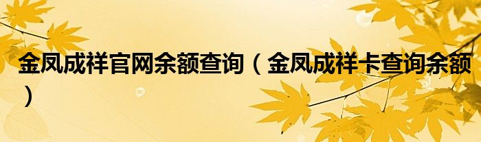 关于金凤成祥官网余额查询,金凤成祥卡查询余额这个很多人还不知道,今天菲菲来为大家解答以上的问题,现在让我们一起来看看吧!