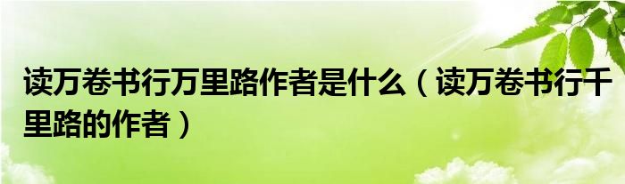 关于读万卷书行万里路作者是什么,读万卷书行千里路的作者这个很多人还不知道,今天菲菲来为大家解答以上的问题,现在让我们一起来看看吧!