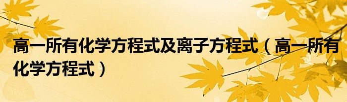 关于高一所有化学方程式及离子方程式,高一所有化学方程式这个很多人还不知道,今天菲菲来为大家解答以上的问题,现在让我们一起来看看吧!
