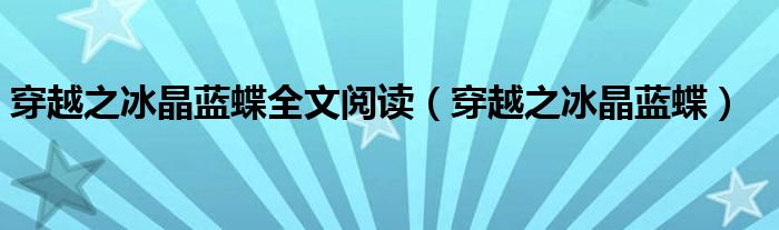 关于穿越之冰晶蓝蝶全文阅读,穿越之冰晶蓝蝶这个很多人还不知道,今天菲菲来为大家解答以上的问题,现在让我们一起来看看吧!